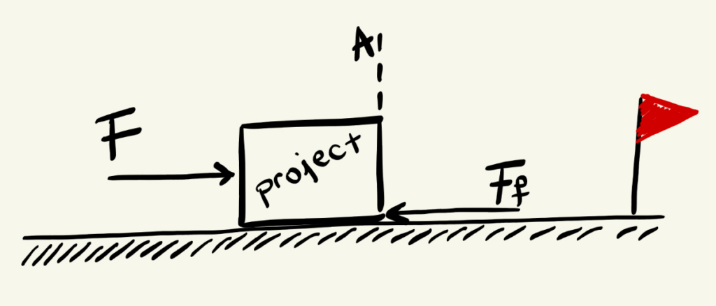 As captured in the diagram above, every company’s primary objective is to push a project from Point A to the finish line. However, this process is never frictionless. Your team’s applied force — funding, experienced technical leads, motivated team members — is constantly opposed by friction in the form of inefficient approval processes, unclear priorities, rework loops, and poor communication between stakeholders.